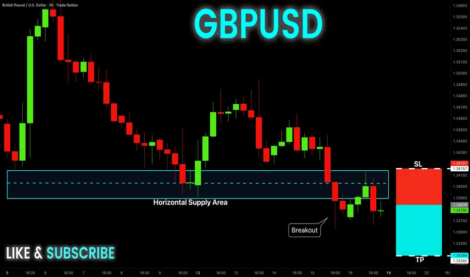 GBPUSD delivered a clean break below the horizontal supply, confirming bearish market structure shift. Weak pullbacks into the broken zone suggest sell-side control, with downside liquidity resting below recent lows.