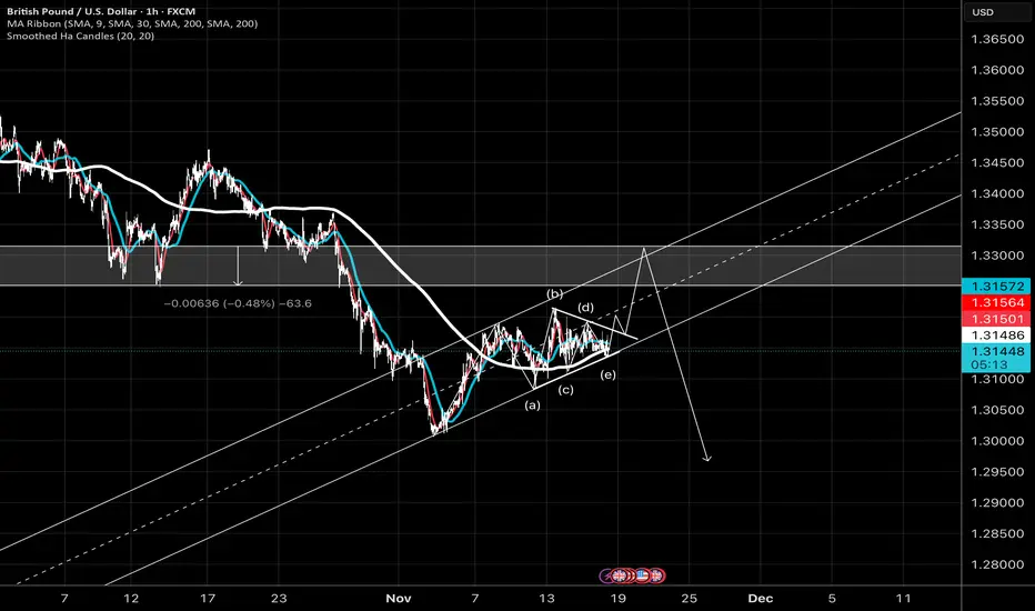 I really would enjoy seeing the pound break out of this triangle to the upside. thought we wrestled gonna do it this morning but still grinding out that possible E wave of B