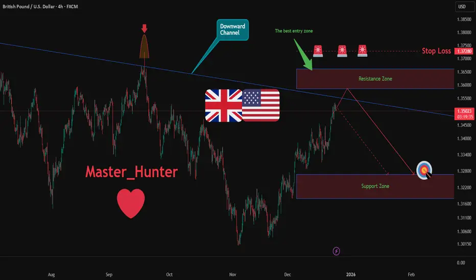 Entry between 1.3586–1.3660 for a short position (entry at these levels with proper risk management is recommended). Target at 1.3268. Set a stop loss at a close above 1.3728, yielding a risk-reward ratio of more than 1:2. Monitor for confirmation via a bearish candle close below entry with rising volume, leveraging the channel's bearish bias.🌟