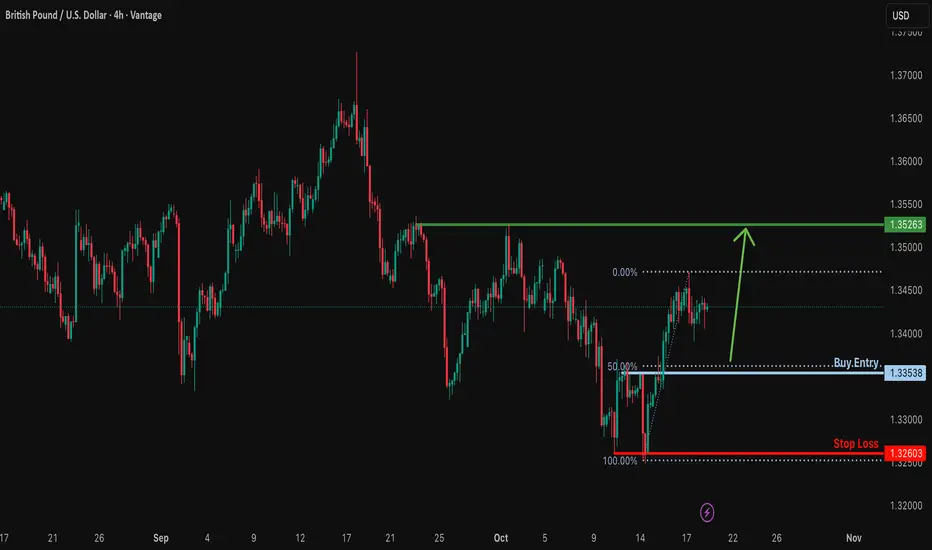 GBP/USD is fallig towards the support level which is a pullback support that aligns with the 50% Fibonacci retracement and could bounce from this level to our take profit.