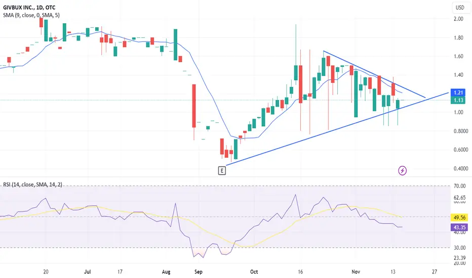 Watching for support told here at the bottom of the wedge, then to break out to the upside.