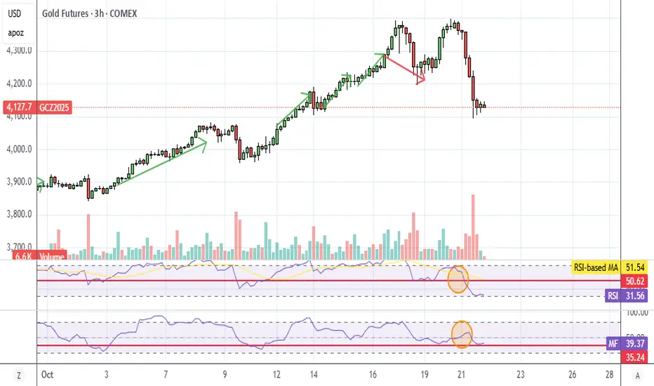 Anyways, you can see on my chart that gold actually went down while MFI was still climbing. Not a good sign. I think gold is done unless something really bad happens in the world, like Russia invading Europe or something along those lines.