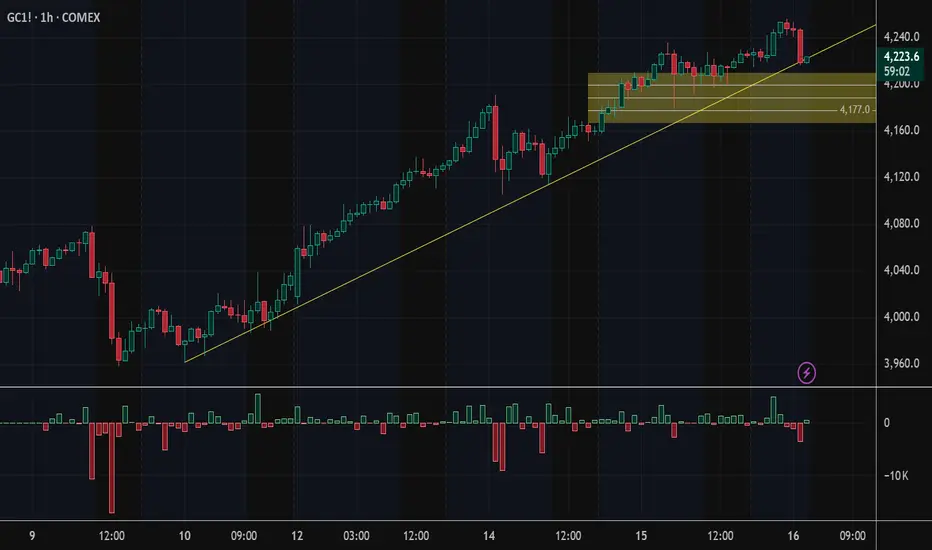 FenzoFx—Gold is trading higher today, made a new ATH. As of this writing, XAU/USD trades at approximately $4,222.0, testing the ascending trendline as support. Going long is still in play, but we suggest waiting for a correction toward $4,177.0.