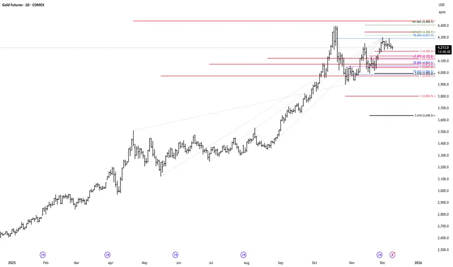 Gold Futures - Daily view ! -Short term balancing and cluster zone to monitor !