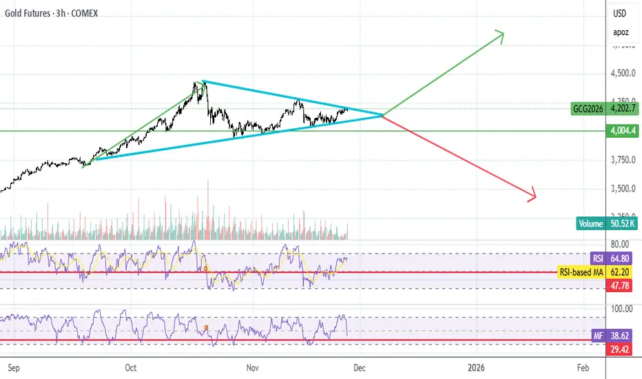 MFI hasn't quite hit oversold, but it looks like it's melting up out of the pennant. Went long on Dec 26 GLD calls, going for a longer term strategy this time, so I'm not just cycling when MFI goes oversold on the 3 hr.
