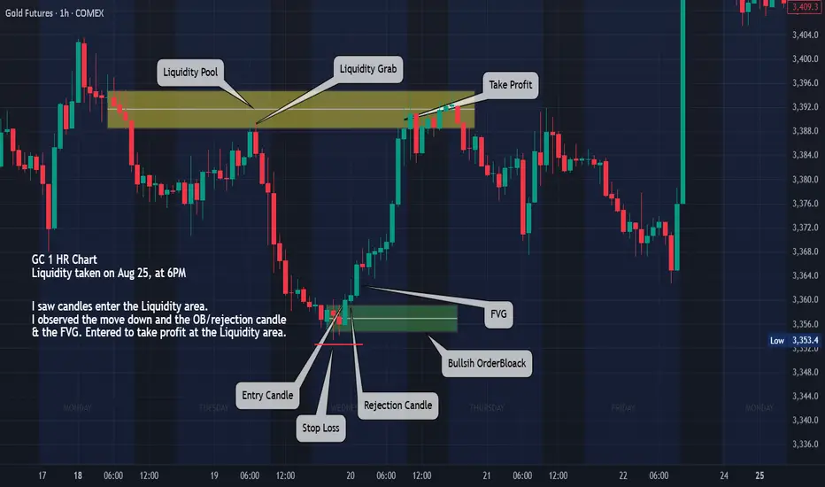 GC - 1 HOUR CHART Liquidity grab to FVR