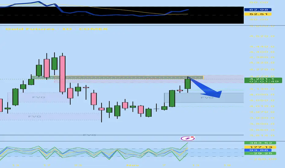 I’m looking at the bullish volume imbalance that is overlapping a bearish fair value gap. Price just made a bullish run leaving a bullish fvg behind. I think we drop out of this fvg and vi and head back down towards the bullish fvg around 4050.