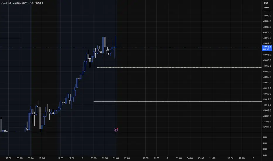 10/8/25 - These are the target areas - GC price for Market open depending if price moves up or down. Will look for trades into these areas.