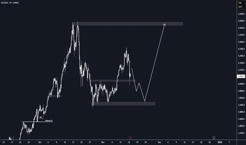 After the mid-October sell-off, Gold entered a period of consolidation lasting more than a week. Price showed clear indecision during this phase. Buyers were convinced the correction had run its course, while sellers continued to push for a deeper move down.