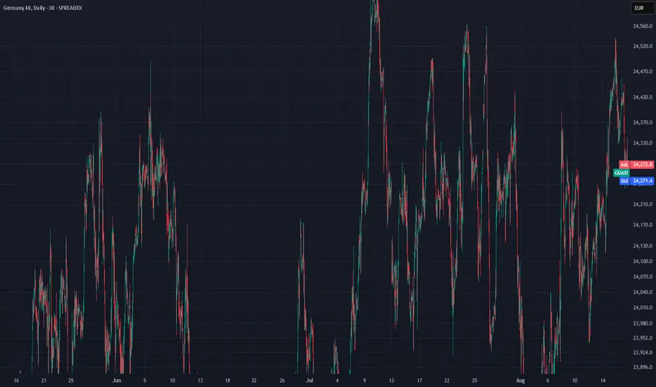 Germany 40 is range-bound at 24,328, near its VWAP of 24,087. RSI at 55 indicates stable momentum. Support is 23,518 while resistance is 24,656.