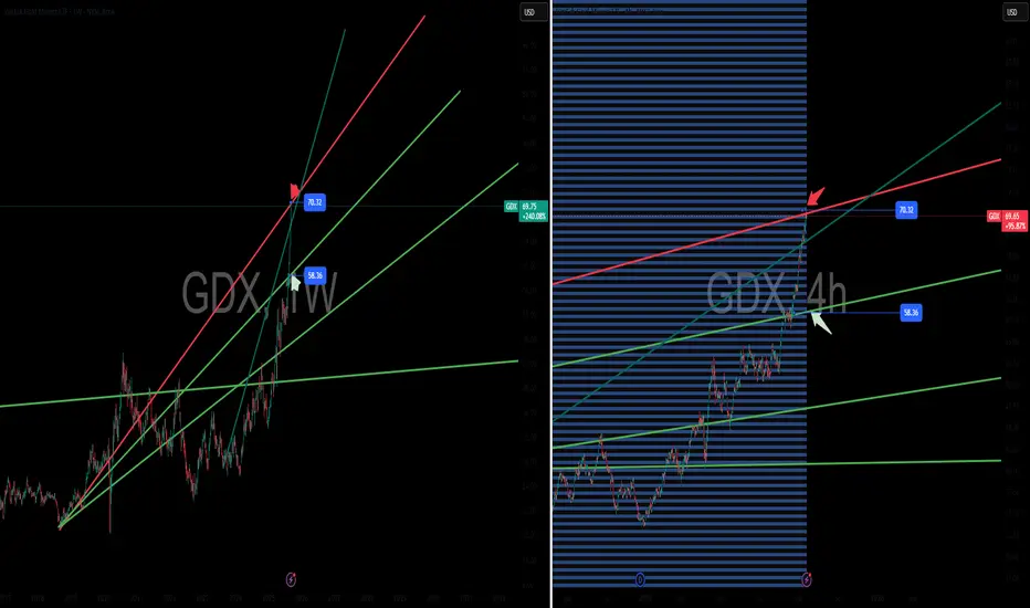 "Skipped" Support: During this powerful ascent, the GDX price "shot through" a previous major resistance level around $62.50. According to classic technical analysis principles, a significant resistance level, once broken with conviction, becomes a new support level. The price has not yet retested this crucial level. A healthy correction would involve a retracement back to this zone to confirm its new role as support before any potential further move up.