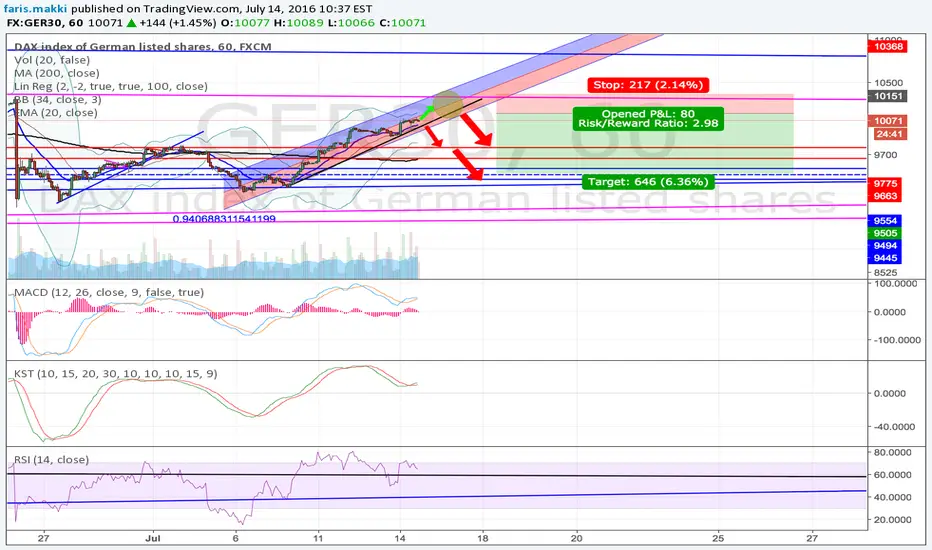 Negative divergence printed price could break uptrend before the price near pre-brexit levels, where profit calls are likely to be hit. It could break before it, but there is considerable momentum and therefore it's best to wait a little long and short higher. Around 10,150 points.
