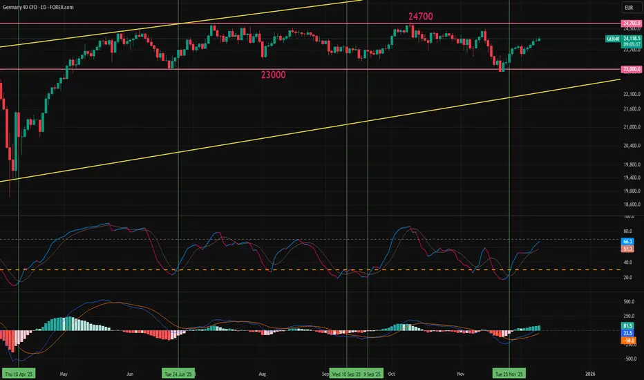 Germany's deep slump is expected to end in 2026, increasing GDP growth from 0.3% to 1% (market consensus). German CPI is expected to stay close to the 2% target like the rest of the EU, and lower ECB rates might give a conservative boost to investments. The changes are positive but not a significant boost for the DAX.