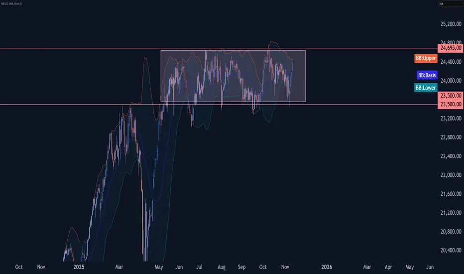 The support level 23500.00 was strengthened by the lower daily Bollinger Band.