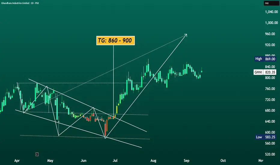 #GHNI has been consolidating in a range and is now showing signs of strength with upside potential. The chart suggests a possible move towards the target zone: 860 โ 900 if momentum sustains.