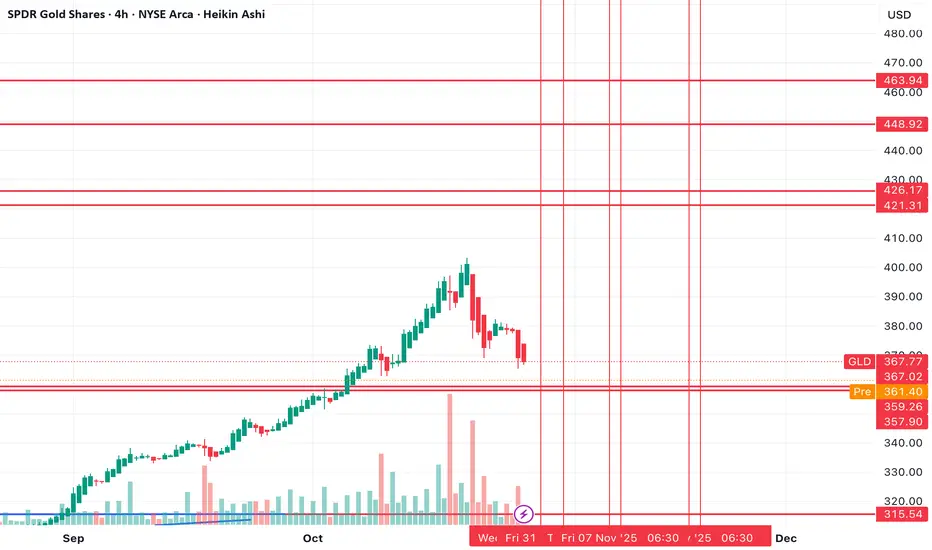 I think if we can hold these bottom support levels, the last leg higher will take us above $400. Likely to the first two resistance levels around the $420 area, but there's possibility that we can extend higher-- I've marked higher resistance levels off on the chart too. This should all play out before Nov 21st expiration.
