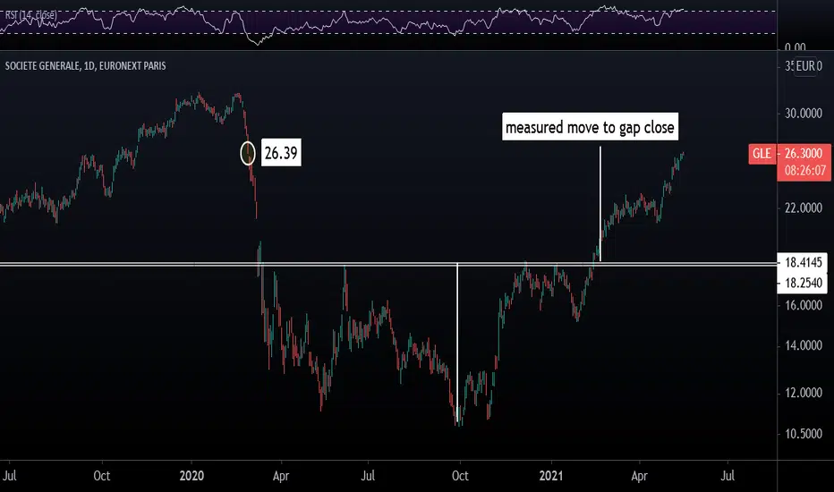 Today, SocGen has reached my full target of 26.39, which is also the close of the gap. This trade can now be fully closed for a 39% return over a 3-month period.