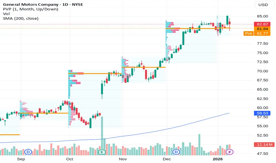 You can see this tension in the price action. GM pulled back roughly 2.6% following the EV charge news, showing that sellers are active when bad news hits. At $82.87, the stock hasn’t shown a strong bounce yet, which tells me buyers are not rushing in aggressively. For a weekly timeframe, that usually means some continuation or at least another test lower before stability returns.