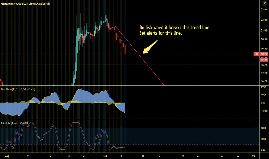 GME will have a strong bullish momentum only after it breaks this resistance trend line.