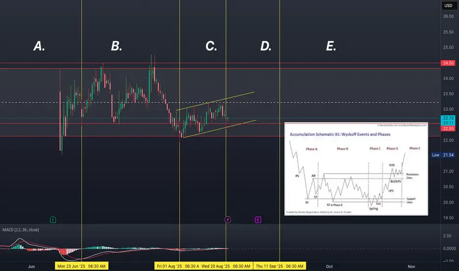 Possible accumulation phase, hence why institutions are eating up shares these past few weeks. Breaking lower would scratch this idea and instead, become distribution.