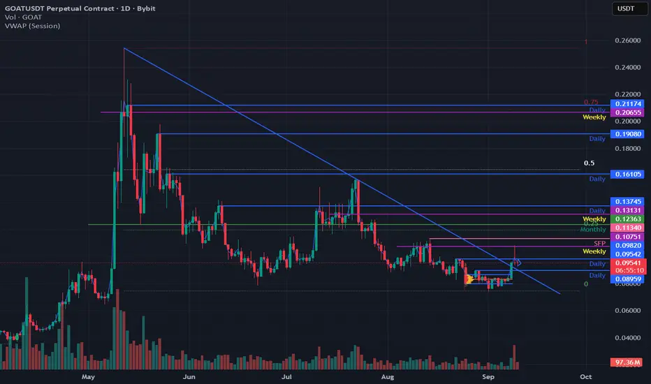 Goat has broken out above the down trend line.