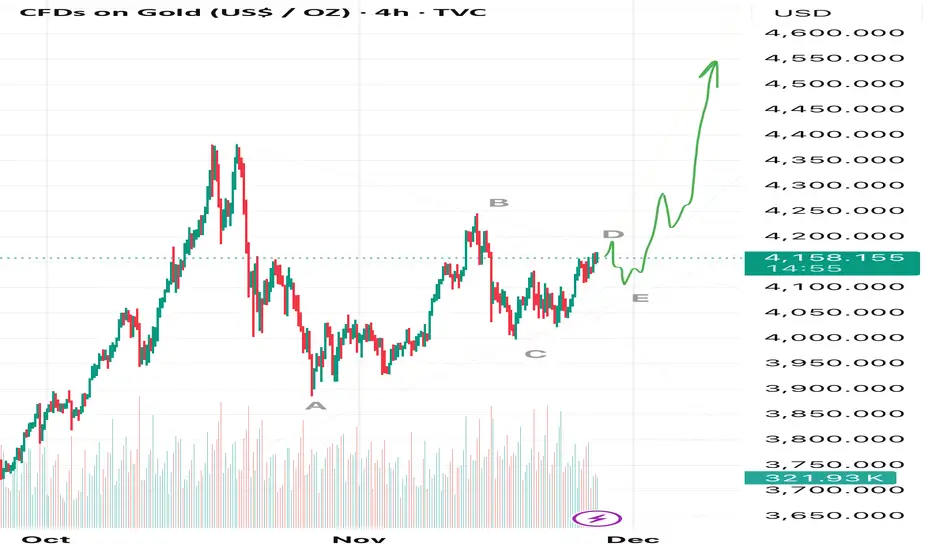 This means we are literally one step away from a new all-time high. Wave E of this giant triangle is going to form right now — and once it’s finished, Gold will explode upward with the powerful green arrow.