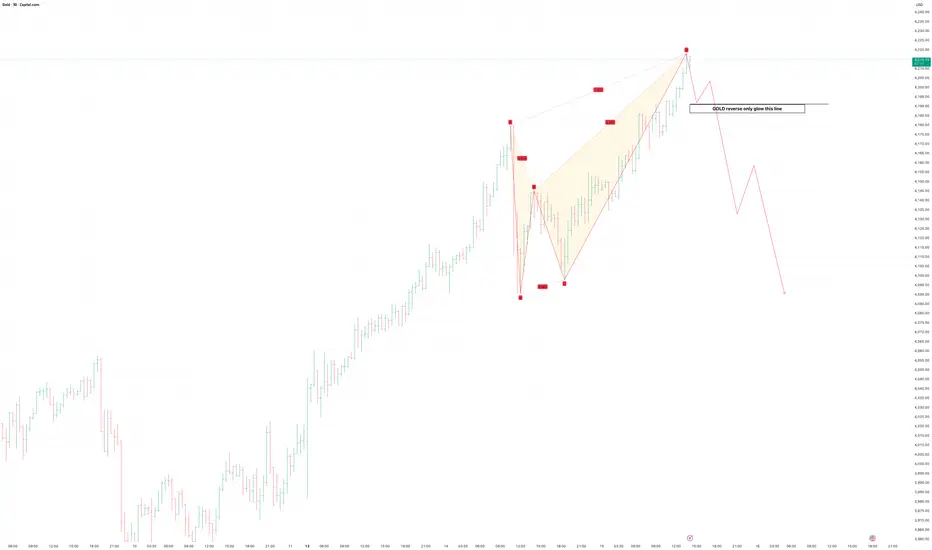 The chart shows a Bearish Harmonic Pattern – likely a Bearish Gartley / Bat completion near the top zone.