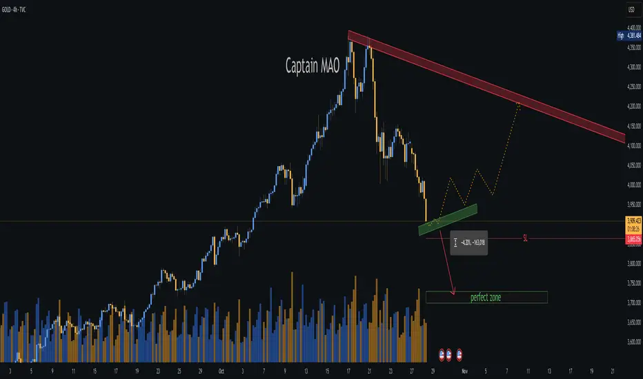 On October 20, 2025, Gold (XAU/USD) recorded a new all-time high at $4,383, marking a historic peak in the current macro cycle. Since then, the metal has retraced sharply by nearly 11%, bringing price action back into a critical decision zone — a true make-or-break level.