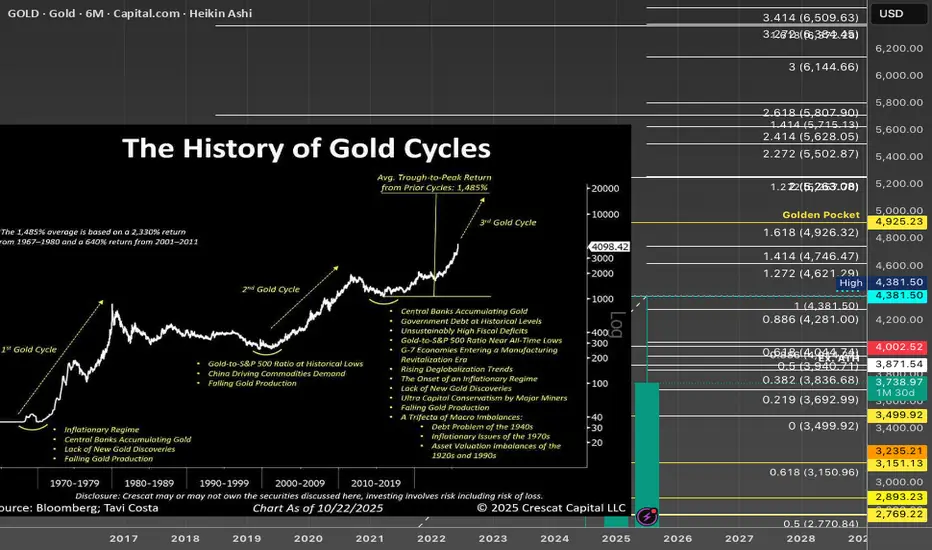 After doing the weekly rounds and reads I came across a post that had this great chart by Crescat Capital. The simple breakdown provides a clean overview from then until now, which for me makes who the Gold market my easier to digest and cut the noise.