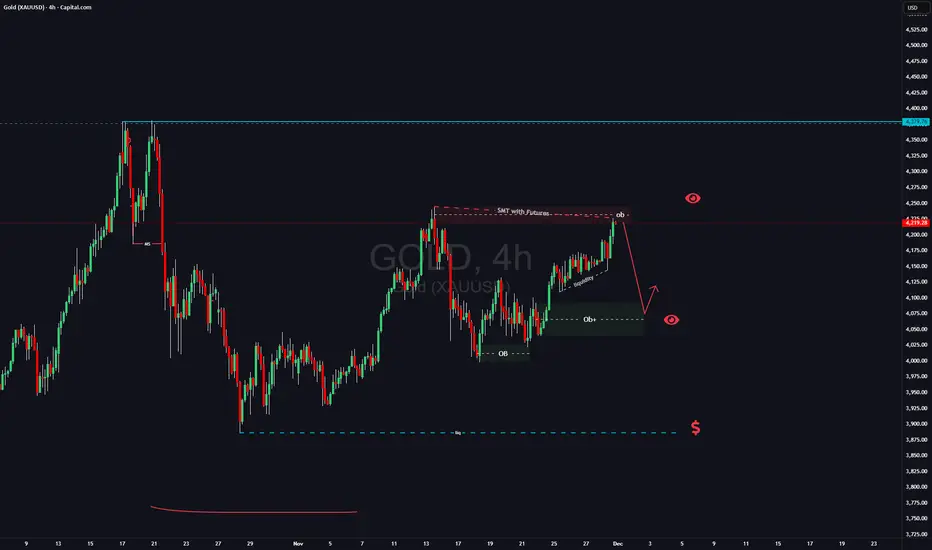 taking in consideration these factors and that it will be beginign of the month on Monday i will be looking for manipulation at market opening. If i see trend shift on LTF i will be looking for short position till 4110 area (4h OB) , if this wont happen i simply gonna skiip trading GOLD this week.