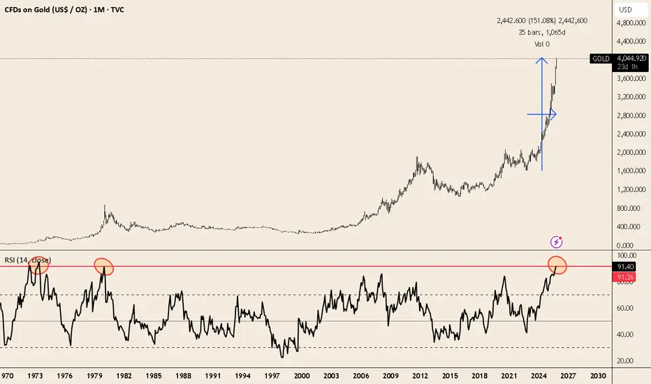 RSI >90 = extremely rare, often followed by several months of consolidation.