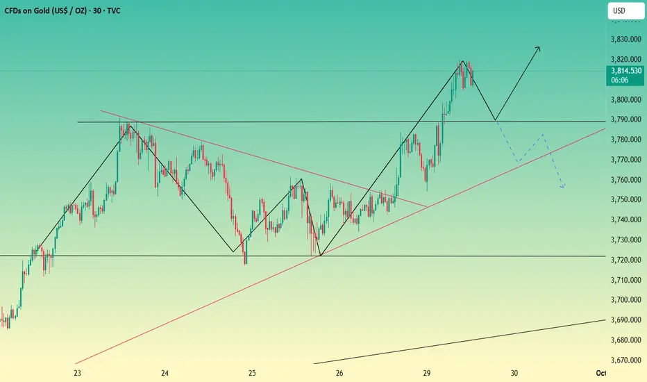 Today, I'm considering shorting gold in the 3813-3818 resistance range, with the initial retracement target at 3800-3780.