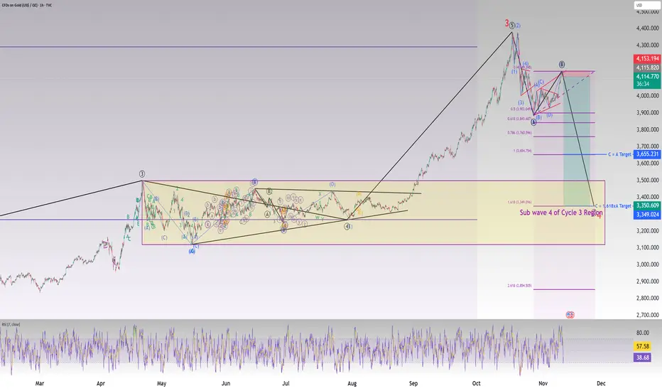 The idea now then is to short and set the stop loss above the end point of sub-wave E of B of 4 as we ride the final wave C of 4.