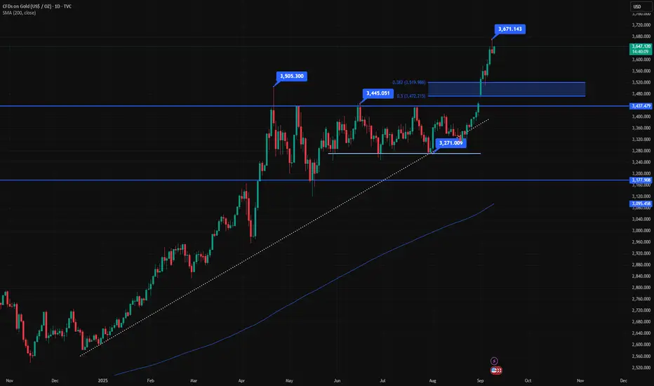 Gold price advanced for the third consecutive day and reached a new record high of $3,674, before retreating somewhat as a jump in US Treasury yields boosted appetite for the Greenback. The revision of job figures in the US further cemented the case for a cut by the Federal Reserve, though traders are also attentive to coming inflation prints. Gold price uptrend stalled after hitting an all-time high (ATH) of $3,674, before retreating below $3,650. If XAU/USD ends negatively on the day, a test of $3,600 is on the cards. On further weakness, the next stop would be the April 22 high of $3,500. The RSI is currently overbought but has not yet reached the critical threshold of 80, suggesting that the bullish trend in Gold remains intact. If Gold clears $3,674, up next would be the $3,700 figure, followed by $3,750, and $3,800.