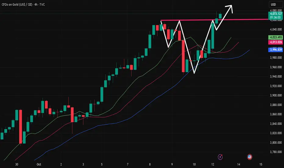Gold has broken through its previous high, which is a standard continued upward trend and V-shaped reversal. The original horizontal pressure of 4060 has become a thing of the past. We can only focus on the expected decline opportunity of the trend line to buy!!!