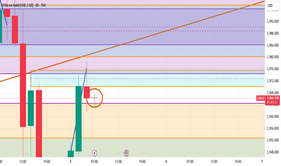 if this cucurrent h2 candle in the circle closes bearish or very small bullish candle below 3969 by 9am UTC then chances of selling more will be very high but if it closes big bullish a bit above 3970 then close your sells