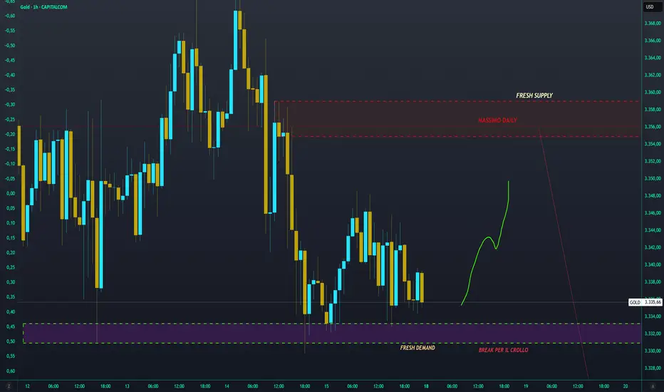 Tutto si deciderà al break della fresh demand, che potrà portare l'oro su minimi importanti come i 3315$ e oltre, anche fino ai 3300$.