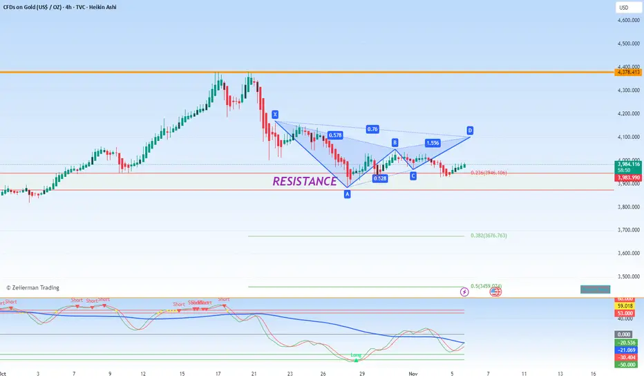 Based on the recent price action, Gold established a new all-time high before undergoing a significant corrective decline of approximately $4,000. From a technical perspective, this sell-off has found a firm footing at a critical juncture. The price has not only stabilized at a prior resistance level—which has now transitioned into a robust support zone—but this level also coincides perfectly with the completion point of a bullish Gartley pattern.