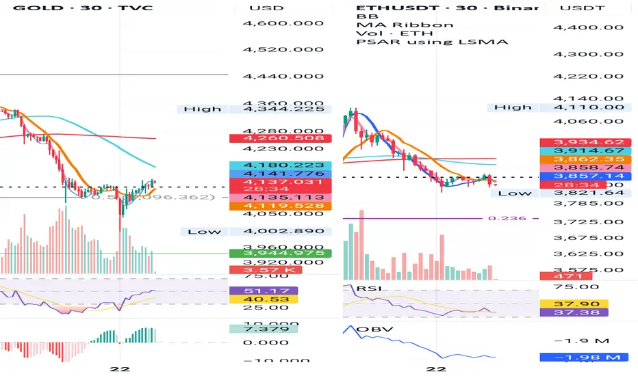 Gold & ETH 30-Min – Momentum ShiftThings have changed since earlier today.
