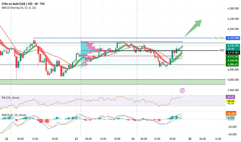 FRVP has been drawn from 0300 Hrs PST on Thursday 23 Oct 2025 till 0300 Hrs on Friday 24 Oct 2025. This is done to identify POC. The center black line is POC. The price will always come back to test POC till it is range bound in box.