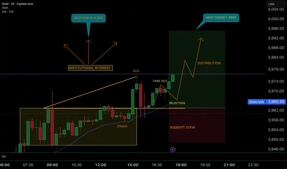 This setup reflects strong bullish momentum with clear structure toward new highs. The plan is to secure profits near 3,995 and, if continuation remains intact, extend to the 4,000 mark.