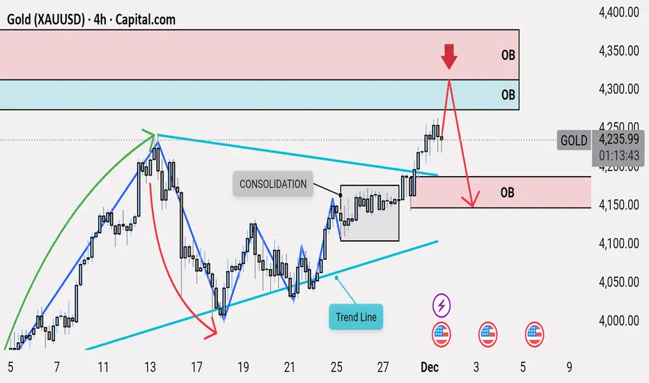 If the Upper OB holds, the expected move is a decline, making this a high-probability sell setup. Only a strong breakout above the OB with sustained closings would invalidate this bearish scenario.