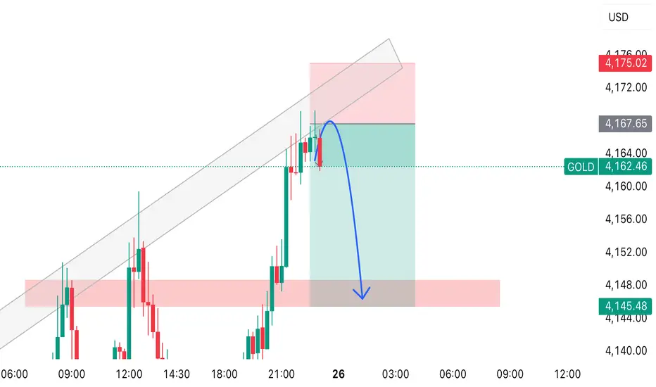 • The arrow shows a move down towards the support demand zone near 4145–4150 USD (highlighted in red).