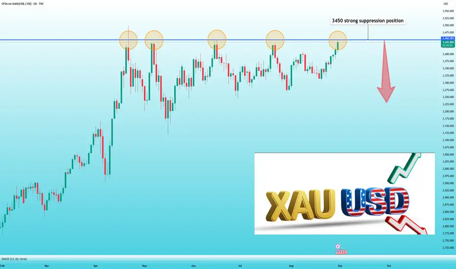 As I said just now, the rise of gold has encountered resistance at 3450. From the previous trend, we can see that there is strong pressure near 3450. It has failed to break through here effectively for four consecutive times. It is hard to say that the gold price will not fall back again when it comes here again. Therefore, I think it is possible to consider shorting near 3450 and set a stop loss at 3460.