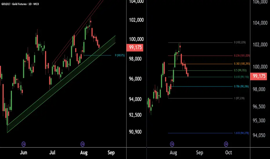 Fibonacci Golden Ratio is also indicating key support levels around ₹99,200 and ₹98,200, which may act as strong demand zones.