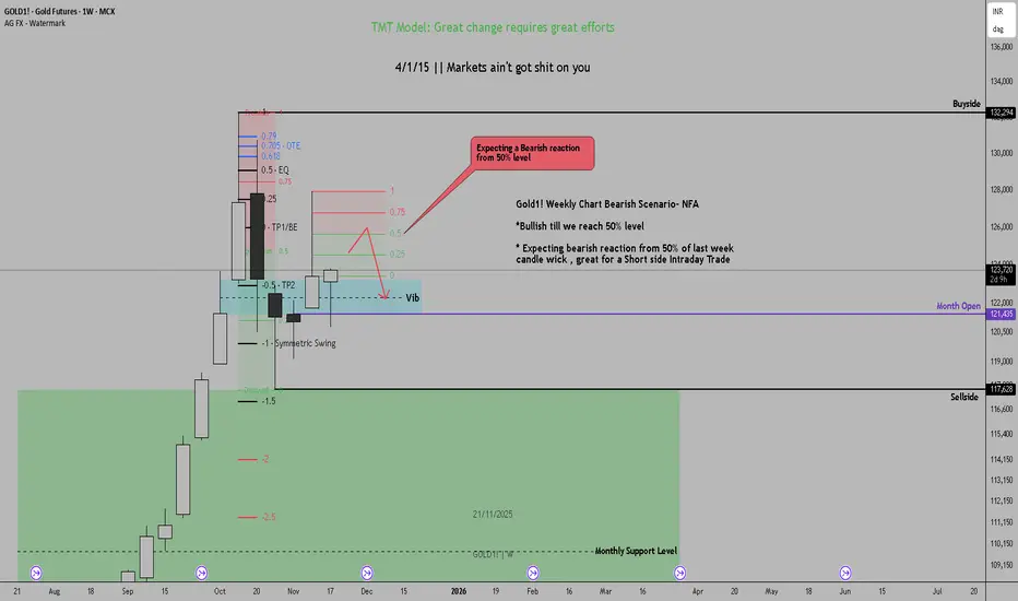Gold1! Weekly Chart Bearish Scenario- NFA