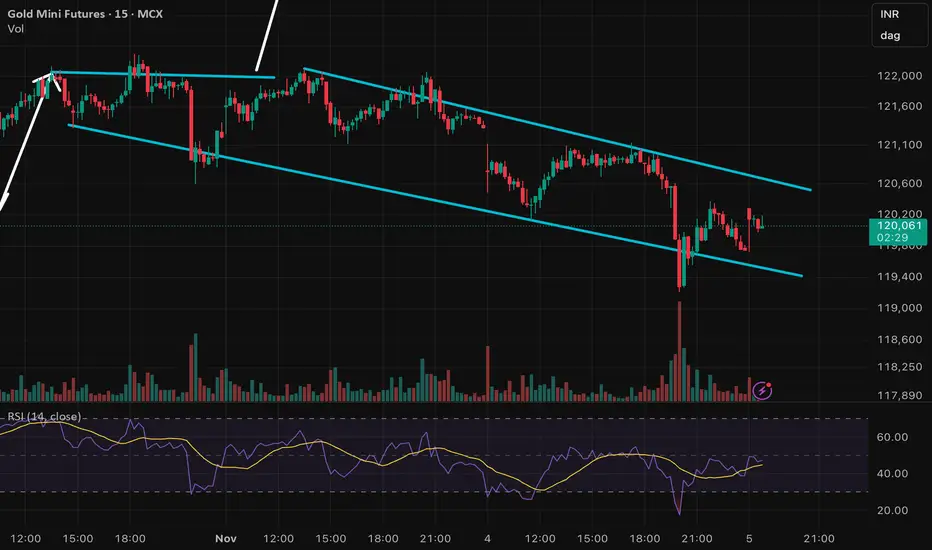 On the 15-minute chart, Gold is currently forming a falling wedge pattern (as marked in the attached chart). A breakout from this structure can trigger sharp intraday moves, so keep it on watch.