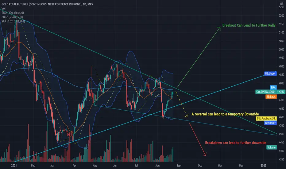 Gold is at an important price point and its future price movements depend on whether it undergoes a breakout or a reversal. Enter a trade only after confirming a Breakout or Breakdown.