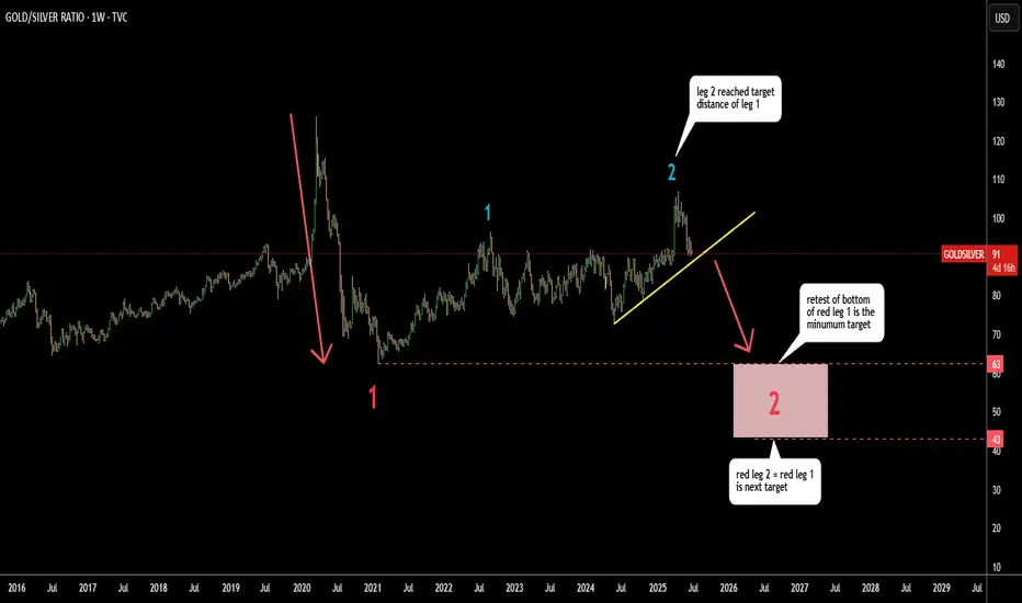 The minimum target is to hit the bottom of red leg 1 at 63.