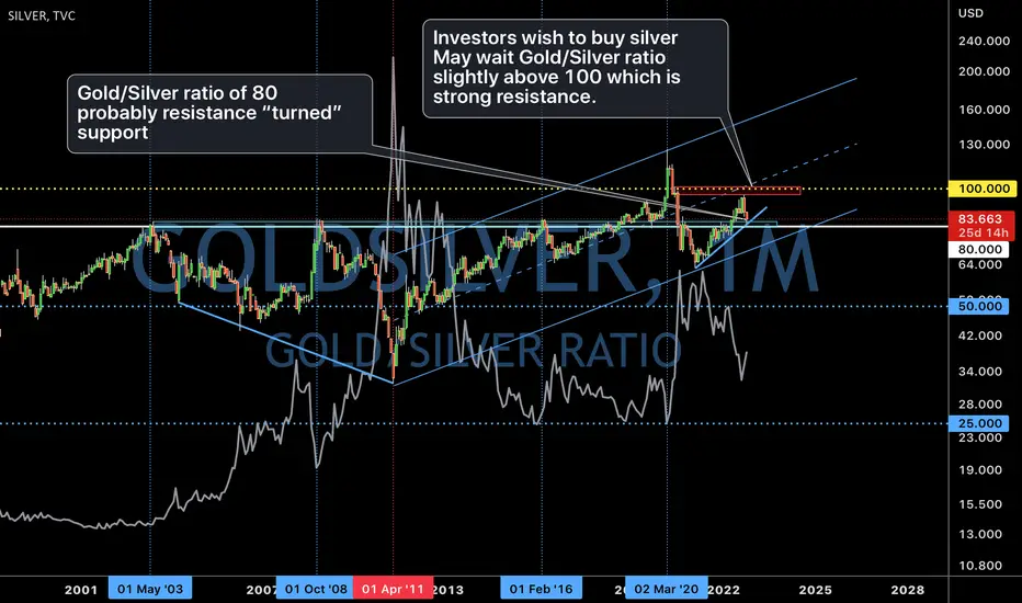 Gold/Silver chart ratio normally used by hedge fund to “Swift” within “Silver” or “ Gold” assets. They usually “treat” ratio of >=100 as buy silver instead of gold vice versa for below <= 50..Instead of follow 50-100 rules. Traders could “read” gold/ratio chart spotting where its “support/resistance” located and decide to “hold” silver or gold.